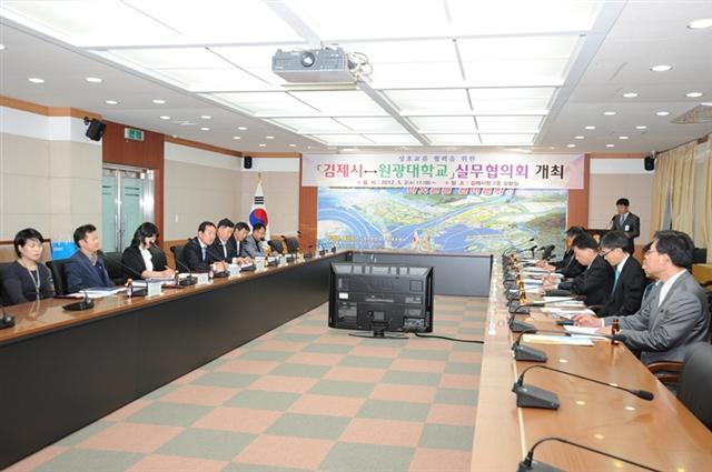 김제시와 원광대학교(총장 정세현)가 지난 3월21일 상호교류협력 협약을 체결한데 따른 실무협의회가 2일 김제시청 상황실에서 양측 관계자 20여명이 참석한 가운데 열렸다.