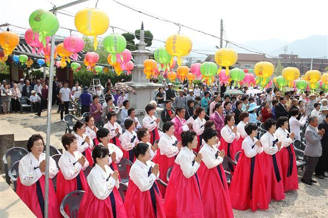 경로잔치는 홍낙표 군수를 비롯한 기관장들과 신도, 지역 어르신들 400여 명이 참석한 가운데 성본스님이 창립한 부루나합창단의 공연을 시작으로 초청가수들의 공연, 품바공연 등으로 이어졌고 어르신들은 정성스런 점심공양과 선물을 제공받았다.