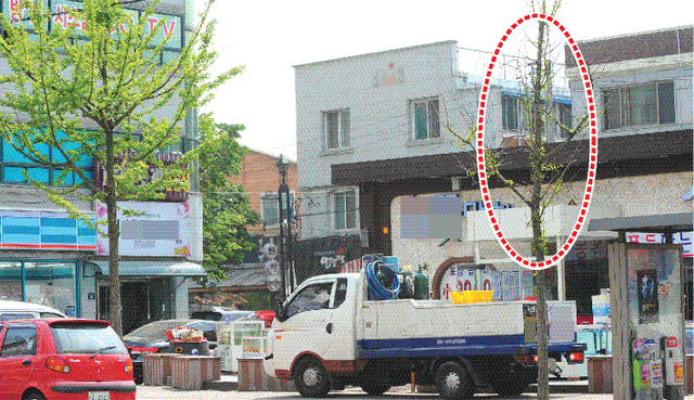 상인들의 과도한 잇속 챙기기에 도심 속 가로수가 병들고 있다.