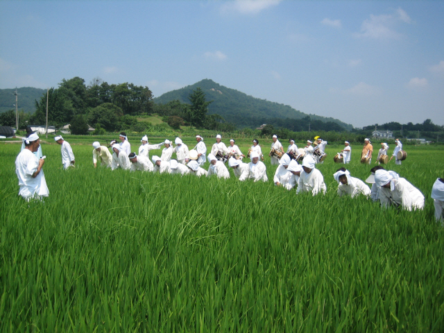 과거에는 농사일 중에서 가장 고된 일이 김매기라고 했다. 가장 무더운 혹서기에 하는 작업인데다, 잡초의 생육이 대단히 왕성해서 약 보름주기로 서너 차례를 거듭해야 하고, 논매기 방식 자체가 허리를 최대한 숙여 호미나 손으로 흙을 파 엎는 일이기 때문이다. 팥죽같은 땀은 비오듯 하고, 나날이 자라는 벼는 살갗과 눈을 찌르기 일쑤다. 농경전통에서는 노동이 지루하고 힘들수록 집단적 힘이나 신명을 통해서 문제를 해결해 왔으며, 그 결사체가 '두레'라고 하는 노동공동체조직이다. 게다가 노동의 고통을 결정적으로 경감시키는 예능적 장치로 두레풍장과 들노래가 한 몫 했음이 사실이다.