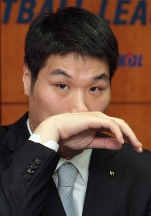 ▲ 자유계약선수(FA)로 풀린 서장훈 선수가 21일 오후 서울 강남구 KBL 센터에서 열린 KT 입단 기자회견에서 취재진 질문을 듣고 있다 .