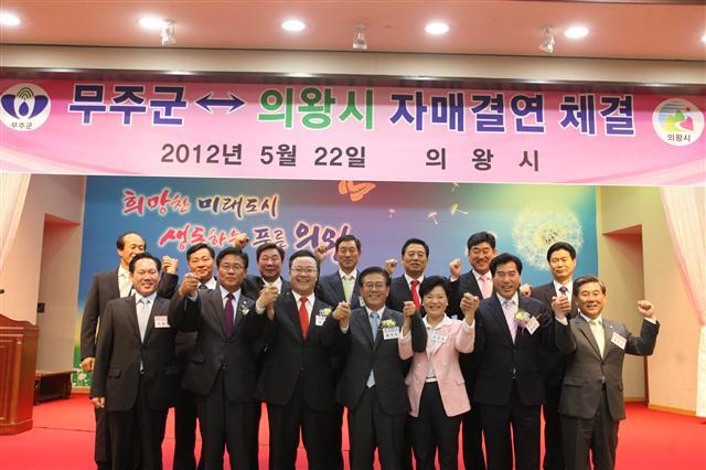 22일 오전 11시 의왕시청 대회의실에서 진행된 결연식에는 홍낙표 무주군수와 김성제 의왕시장, 김준환 무주군의회 의장과 김상돈 의왕시의회 의장 등 두 기관 단체장들과 의회 의원, 그리고 기관사회단체장 등 100여 명이 참석했다.