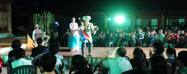 지난 26일 전주 한옥마을 내 소리문화관에서 막이 오른 전주문화재단(이사장 유광찬)의 마당 창극'해같은 마패를 달같이 들어메고'(이하 '해마달'). 달빛 적시는 한옥으로 불러들인 창극, '춘향가'의 변학도 생일 잔치와 암행어사 출두 등을 중심으로 풀어낸 무대는 미디어 파사드를 배경으로 관객들과 신명나게 호흡했다.