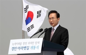 ▲ 이명박 대통령은 28일 "국내 종북세력이 큰 문제"라고 지적했다. 사진은 지난 25일 경인 아라뱃길 개통 축하 연설을 하는 이 대통령. 연합뉴스