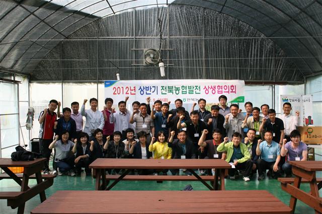 전북농협(본부장 강종수)은 25일 고산창포마을에서 전북농협 관내 직원 40여명이 참석한 가운데 지역농업과 농민조합원의 실익증대를 위한 '전북농협발전 상생협의회'를 개최했다. 이날 협의회에서는 '사업구조개편에 따른 상생·협력방안'과 '이해증진을 위한 의사소통기회 확대방안'이라는 주제를 가지고 업무 분야별로 참석한 임직원들이 열띤 토론을 벌였다.