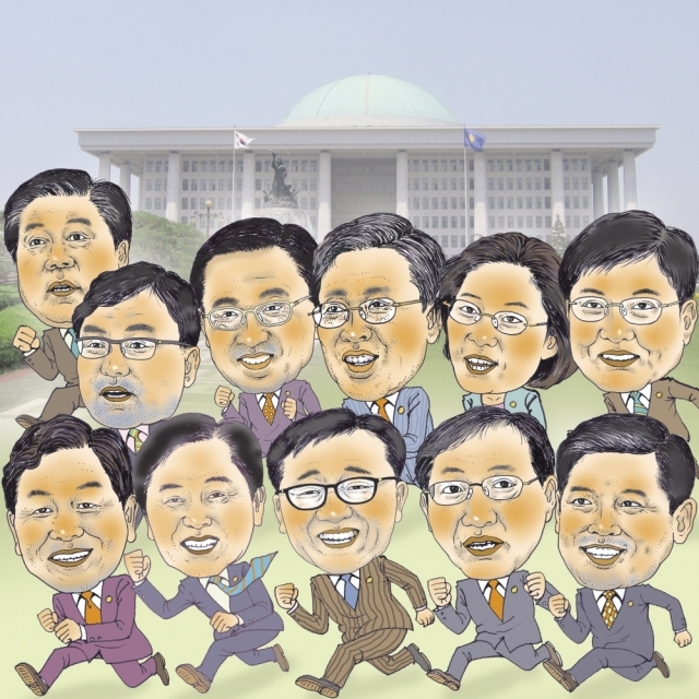 ▲ 제19대 총선에서 선출된 11명 국회의원들이 발로 뛰는 모습을 캐리커쳐 했다. 도내에서 선출된 11명 의원 가운데 7명은 초선이다. 정치를 새롭게 바꿔달라는 도민들의 변화 요구가 투영된 결과다. 새로운 정치 개혁과 혁신을 주도하는 큰 정치를 펼치기를 기대해 본다. 권휘원 화백 musimhan@