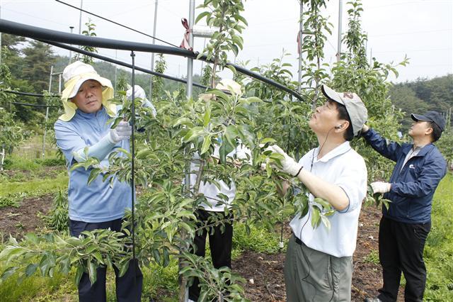 남원시청 홍보전산과 직원들은 최근 인월면 인월리 강신명씨의 사과농장에서 가지솎기작업을 진행했다. 남원시의원들과 의회사무국 직원 등 20여명도 1일 송동면 송내리 김정도씨의 복숭아 밭에서 봉지씌우기작업을 실시했다.