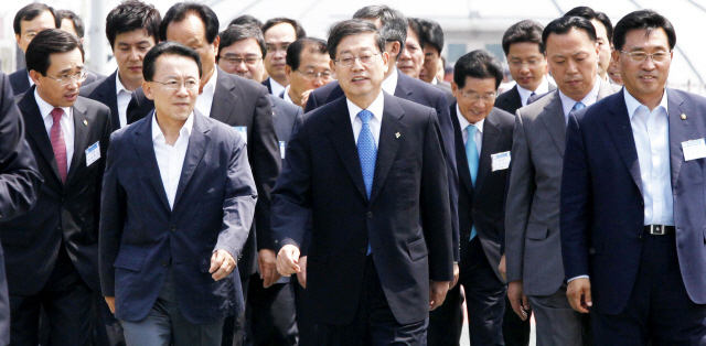 김황식 국무총리와 김완주 도지사 및 초청 인사들이 기공식장으로 입장하고 있다.