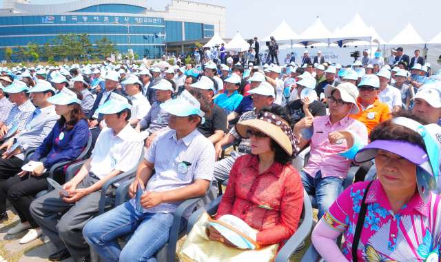 새만금 신항만 기공식에 참석한 지역주민 및 초청 인사들이 역사적인 순간을 맞이하고 있다