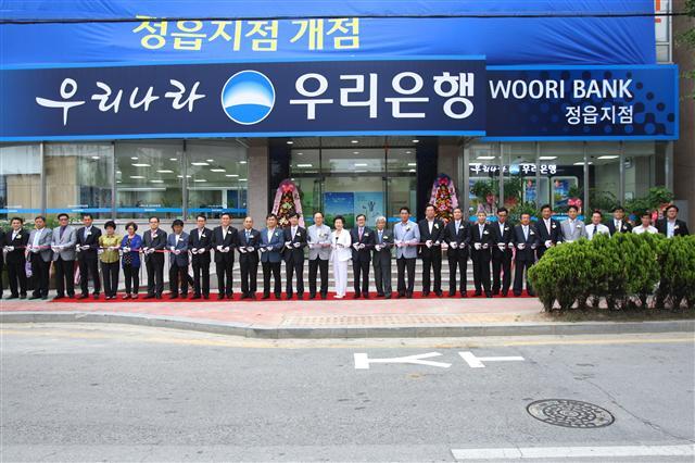 이순우 은행장은 축사에서 "우리은행은 1899년 고종황제가 일본상인에 치여 큰 고난을 겪고 있던 조선상인들을 위해 내탕금 3만원을 내시어 설립한 최초의 민족은행으로 113년의 역사와 전통을 가지고 있다며 아름다운 단풍으로 유명하고 갑오동학농민혁명의 혼이 담긴 정읍에 개점된 만큼 고객들이 편리한 은행이 되도록 최선의 노력을 다하겠다"고 말했다.