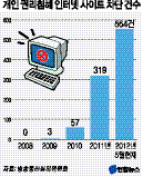 자신의 권리가 침해됐다는 개인의 신고로 접속 이 차단된 인터넷 사이트가 최근 급증한 것으로 나타났다.