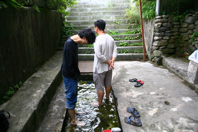 진안 대두산의 냉천은 조선시대 명의 허준이 약 달이던 물로 소문나면서 전국적으로 유명세를 탄 여름철 명소다. 또 위장병과 피부병, 무좀과 땀띠에 효험이 있다고 알려져 늘 사람의 발길이 끊이지 않는다. 평일이고 이른 아침이어선지 관광객은 눈에 띄지 않으나, 소문대로 냉천은 30도가 넘는 무더위 속에서도 섭씨 3도의 차가운 물을 콸콸 쏟아내고, 언덕 바위틈 풍혈에서는 안개처럼 서늘한 냉기가 뿜어 나와 풀잎마다 이슬이 맺히고 바위마다 푸른 이끼가 끼어 있다.