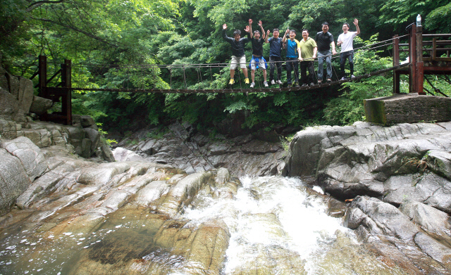 텀벙텀벙 건너고 싶은 길을 만났다. 깊은 산세 만큼, 계곡도 비경이다. 하얀 물거품에 기암절벽, 그리고 호젓한 숲길에서 자아성찰의 기회가 철철 흐른다. 외지인들은 이 곳을 알까. 관조의 발걸음이 묻어나는 계곡 길에 명소라는 의미를 같이 묻어두고 싶다. 그래 같이 떠나자. 구룡폭포 순환코스에 새로운 추억이 쌓이도록.