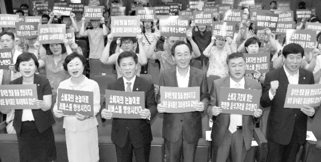 (사)한국외식업중앙회 완산·덕진지부가 마련한 이날 결의대회에는 업주들외에도 송하진 전주시장과 이명연 전주시의회 의장 등이 참석했다.