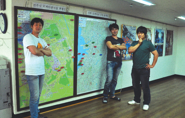 전주영상위원회의 촬영지원팀에서 일하는 김선태(32) 이대영(30) 유정훈(32)씨는 전북에서 유일하게 활동하는 공식 로케이션 매니저다. 이들에게는 영화 제작 지원 외에도 또다른 중요한 임무가 있다. 전북에 아직 발견되지 않은 매력적이고, 참신한 영화의 배경이 될 숨은 지역을 찾아다니는 일이다.