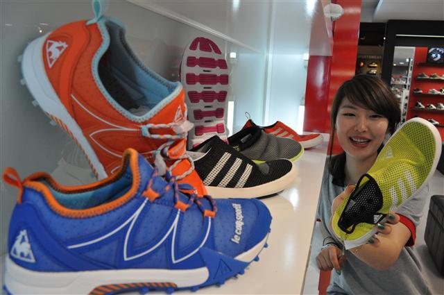 롯데백화점 전주점(점장 홍정화) 4층 스포츠 매장에서는 본격적인 여름 휴가철을 맞아 다양한 레저활동시 활용도가 높은 아쿠아 슈즈를 선보여 인기몰이를 하고 있다. 스포츠매장에는 '빨주노초파남보'도 모자라 금·은색에 형광색까지 다양한 색상의 아쿠아 슈즈가 눈길을 사로잡고 있으며 색깔뿐 아니라 팝아트 그림, 호피, 체크 무늬 등도 선보이고 있다.