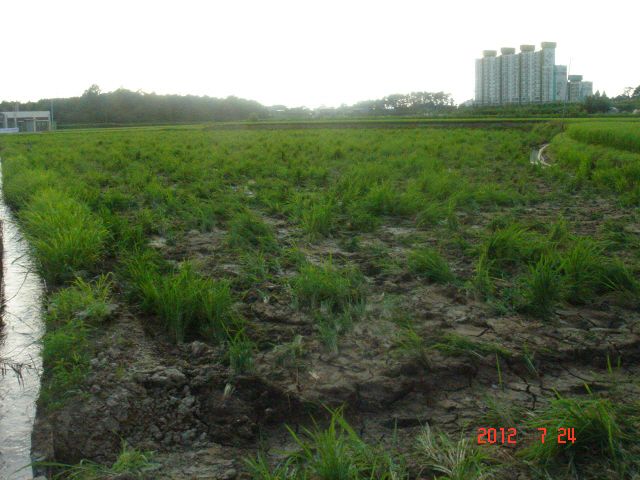 김제시 용동교 밑에서 제월동 방향으로 약 1000여m 가다보면 나락(벼)이 갈아 엎어져 있는 논이 한눈에 들어와 이곳을 지나다니는 농민들이 영문을 모른 채 속상해 하고 있다.