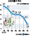 국제유가 하락과 농축수산물 가격이 안정된데 힘입어 물가상승률이 급락했다.