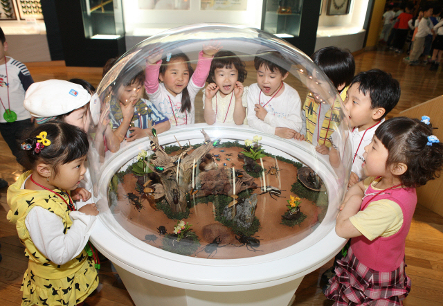 ▲ 무주곤충박물관을 찾은 어린이들이 박물관에 진열된 곤충을 바라보며 즐거워 하고 있다. 사진 제공=무주 반디랜드 곤충박물관