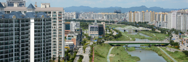 | ▲ 5일 전주의 낮 최고기온이 38.1℃로 역대 최고기온 5위를 기록했다. 전문가들은 푄현상 등과 함께 녹화사업 부족, 하천변 아파트 등이 전주의 기온을 높이는 이유라고 설명한다. 사진은 삼천을 중심으로 들어서 있는 아파트 숲. 안봉주기자 bjahn@ | ||