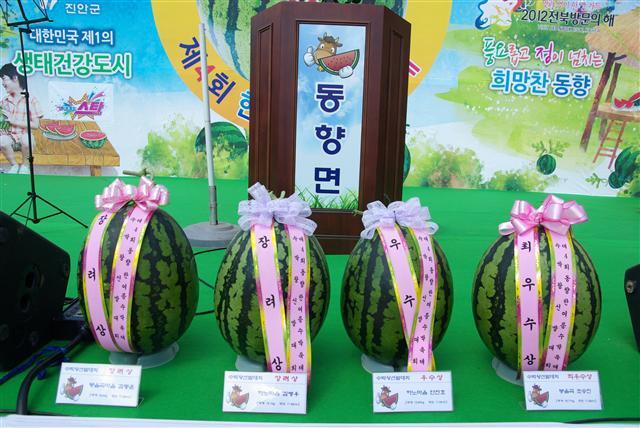 진안군 동향면(면장 전형욱)이 면민의 날에 즈음해 수박왕 선발대회를 매년 개최, 관심을 끌고 있다. 올해로 4회째다.