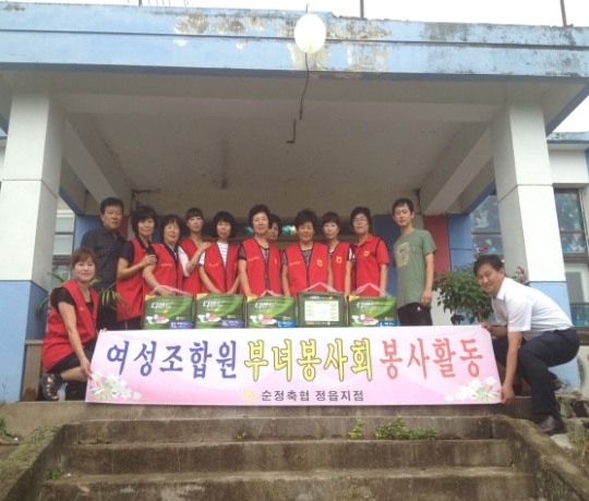 한편 순정축협 부녀봉사회는 2007년부터 사회복지시설 봉사활동 및 김장김치 나누기 행사, 나눔축산운동(쇠고기 나눔운동) 등 매년 다양한 형태로 소외된 계층에 이웃사랑을 실천하고 있다.