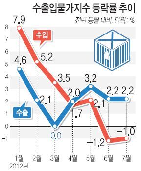 하지만 수출물가 역시 석 달째 하락해 수출 전망에 우려를 낳고 있다.