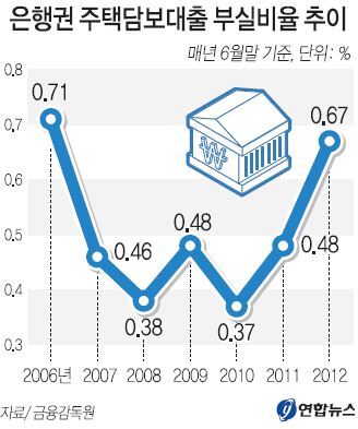 은행권 주택담보대출 부실비율은 2006년 6월의 0.71% 이후 최고치다.