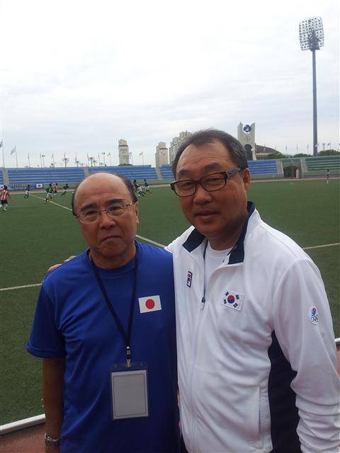| ▲ 일본팀 단장인 후로우 코우지(왼쪽)와 한국팀 단장인 고환승 전북체육회 사무처장. | ||