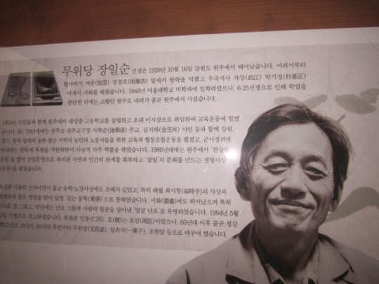 | ▲ 원주시 중앙동 무위당 기념관에 장일순 선생을 소개하는 전시물. 이세명기자 | ||