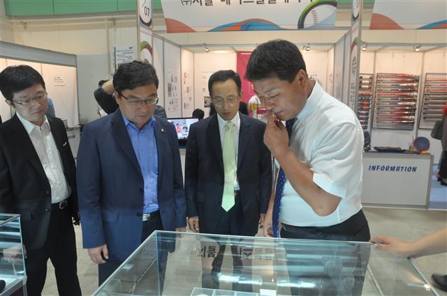 ▲ 24일 서울 삼성동 코엑스에서 열린 '제1회 대한민국야구박람회'에서 이상직 의원(왼쪽 두번째)을 비롯한 행사 관계자들이 야구용품 및 장비들을 살펴보고 있다.