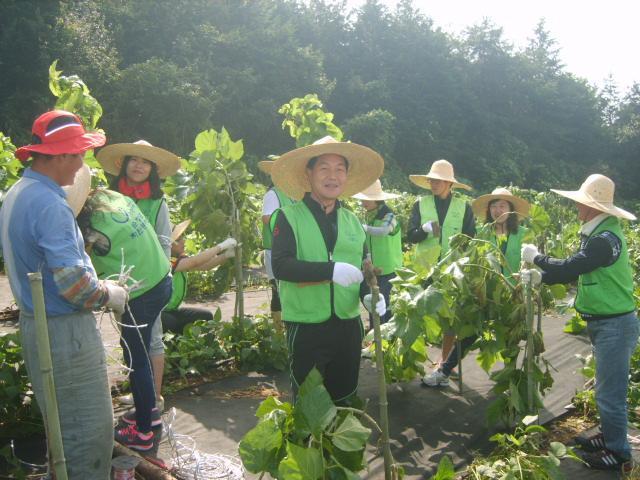 ▲ 농협중앙회 순창군지부는 태풍 피해를 입은 농가를 지원하기 위해 1일 휴일도 반납한 채 전 직원이 일손돕기에 나섰다.