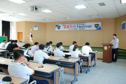 3일 임실경찰서 회의실에서 가진 이날 경진대회는'감동치안 페스티벌'이란 주제로 본청과 지구대, 파출소 관계자 등 직원 50여명이 참석했다.