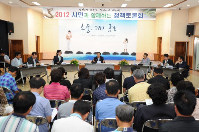 '2012년 김제시민과 함께 하는 정책토론회'가 5일 김제시청 대회의실에서 전북대 신기현 교수 등 분야별 전문가 5명과 시민정책패널 70명이 참석한 가운데 열렸다.