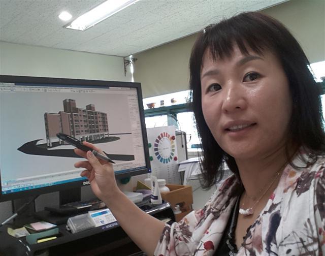 | ▲ 순투시도의 이순례 대표가 앞으로 전주 시내에 생길 한 건축물의 외관에 어떤 색체와 선을 적용할지를 고민하고 있다. | ||