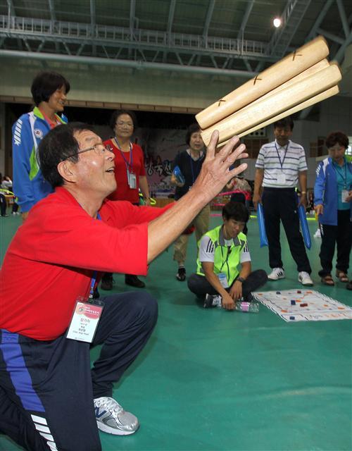 2012 세계한민족축전에 참가한 해외동포들이 18일 부안군 실내체육관에서 윷놀이를 즐기고 있다. 40개국 450여명의 해외동포들은 전통놀이와 체육활동을 했다. 19일에는 새만금을 방문한다. 연합뉴스