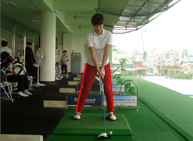 무릎동작도 마찬가지로 중요하다. 백스윙을 하면서 무릎이 회전의 축을 만들기 위해서 버팀목 역할을 해야 하는데 무릎이 우측으로 많이 밀리게 되면 이 또한 좋지 않은 동작이 된다. 무릎의 역할은 몸이 회전하는데 유연성을 주면서 최대한 몸통이 고정되게 하는데 있다. 따라서 무릎이 너무 많이 움직이는 것은 좋은 스윙이라 할 수 없는 것이다.