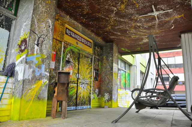 ▲ 익옥수리조합 레지던시 입구. 액션페인팅이 이 곳의 레지던시의 의미를 대신 표현하는 듯하다.