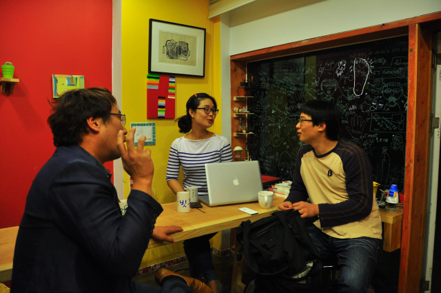 ▲ 군산창작 레지던시. 왼쪽부터 이상훈 대표, 서진옥 큐레이터, 김홍빈 작가.