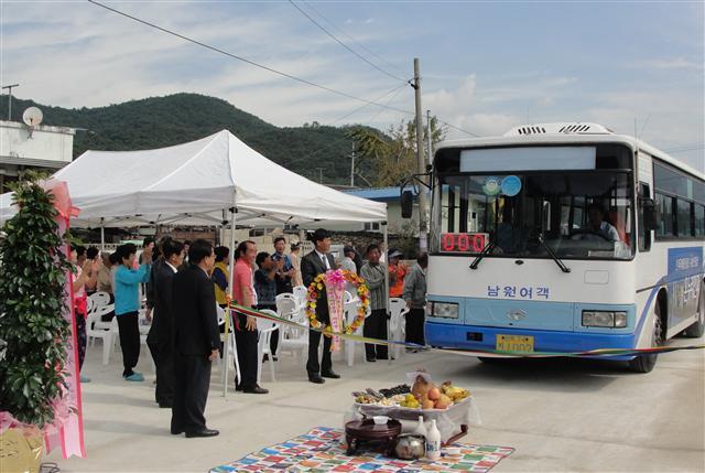 지난달 28일 남원시 수지면 산촌마을에서 의미있는 행사가 벌어졌다. 산촌마을의 숙원사업인 마을회관 앞까지 시내버스가 개통돼, 이에 따른 축하 잔치가 열린 것.