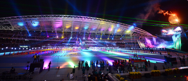 제93회 전국체육대회 개막식이 11일 대구스타디움에서 열린 가운데 손연재 선수가 화려한 조명아래 또 하나의 태양이라는 주제로 축하무대를 선보이고 있다.