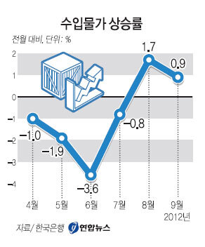 올해 9월 수입물가가 전월에 이어 두달째 올랐다. 수입물가는 소비자물가에 직접 영향을 미치기 때문에 물가 불안이 우려된다.