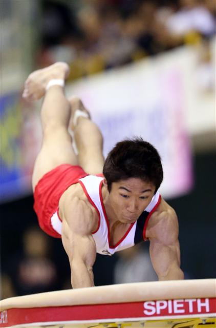 ▲ 런던올림픽 체조 금메달리스트인 '도마의 신' 양학선이 16일 기계체조 종목별 결승 도마에서 '여2' 기술을 선보이고 있다. 연합뉴스