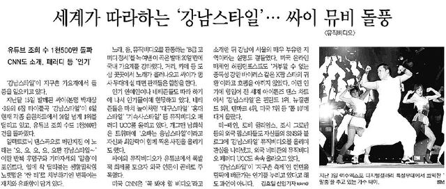△싸이 '강남스타일' 대박친 3가지 이유…(국민일보 2012년 9월 13일 14면)