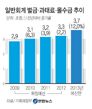 23일 내년도 정부 예산안을 보면 일반회계 세외수입 가운데 벌금·몰수금·과태료 수입을 3조6천601억원으로 편성했다.