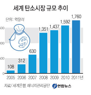 최근 유럽 재정위기 등의 영향으로 탄소시장 성장세도 둔화했지만 시장 규모는 2008년과 비교해도 30.3% 늘었다.