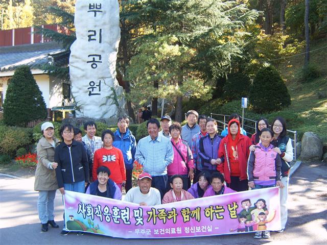 무주군은 지난 23일 대전 뿌리공원을 찾아 관내 정신장애인 가족 25명에 대한 사회적응훈련을 실시했다.