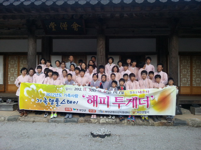 부안경찰서(서장 정병권)는 3일부터 4일까지 부안군 청소년지원센터와 연계해 1박 2일 일정으로 내소사에서 초·중·고 자녀 12가족(50명)이 참가해 자아발견 및 가족애를 함양하기 위한 가족 템플스테이를 운영했다고 5일 밝혔다.