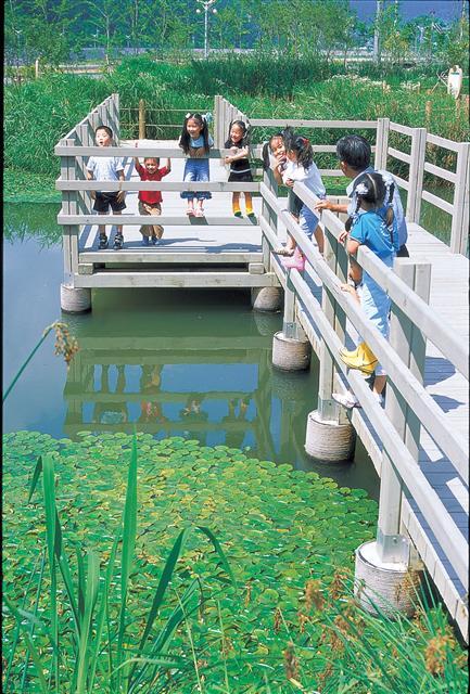 ▲ 무주군 하수종말처리장을 찾은 어린이들이 시설물을 둘러보고 있다.