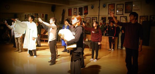 ▲ 연극 '천년의 달' 공연을 앞두고 극단 황토레퍼터리컴퍼니 단원들이 연습하고 있다.